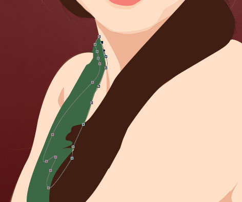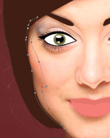 Make a new layer for the hair and once more use the color picker to select the most dominant hair color in your picture. If you want to add in highlights you can do that later. For the hair I will be using #401e12. Just like before trace the hair and then fill in the path.