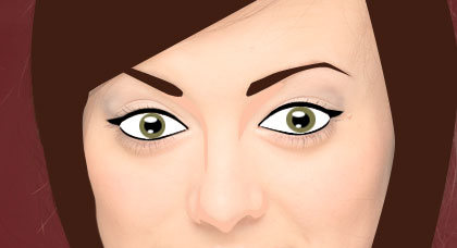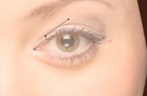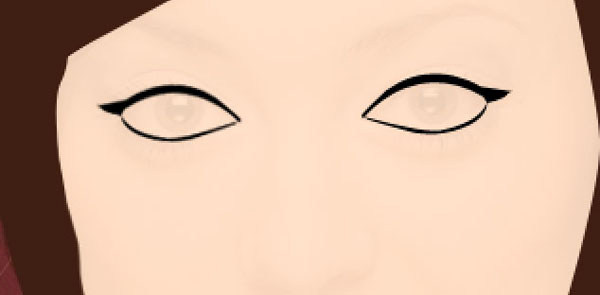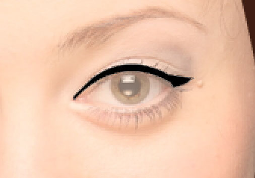 Lower the opacity of the skin layer enough so that you can see the facial features of the original image. Create a new layer for the eyes and change your foreground color to #000000. Begin tracing the outline of the top eyelash. Notice you do not have to be super detailed.