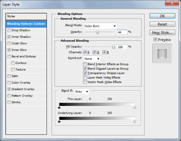 Right-click on duplicated layer and go into the Blending Options and apply Color Burn and Opacity level at 44%.