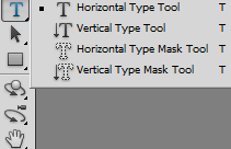 Horizontal Type Tool, Vertical Type Tool, Horizontal Type Mask Tool, Vertical Type Mask Tool