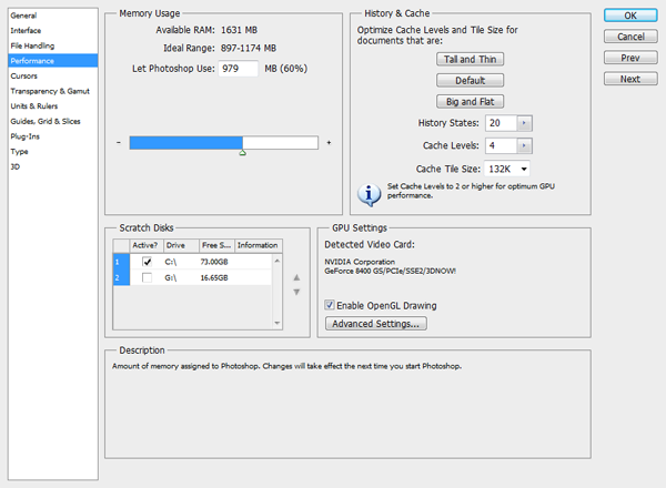 The Zoom Tool allows you to zoom into a document. Drag to the left to zoom out or drag to the right to zoom in. Click to zoom in, Alt-click to zoom out. You can temporarily access the Zoom Tool from almost any tool by holing Alt + Space. Note that certain features of the Zoom Tool and the Hand Tool won’t work if you don’t have Enable OpenGL Drawing checked in the Edit > Preferences – Performance tab.
