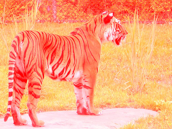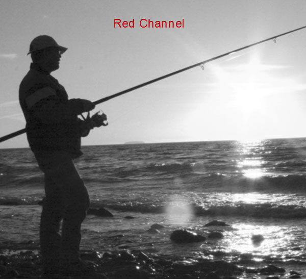 Observe the reddish image above. Can you guess which color channel will be predominant? If not, look at the channels of this image below: