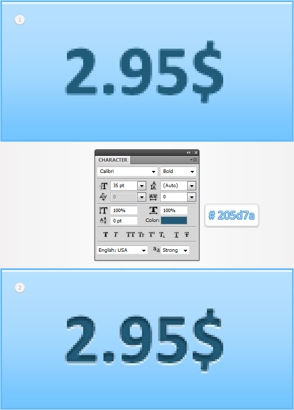 Pick the Type Tool(T), set the color to #205d7a and add a simple price as shown in the following image.