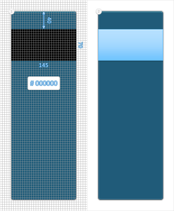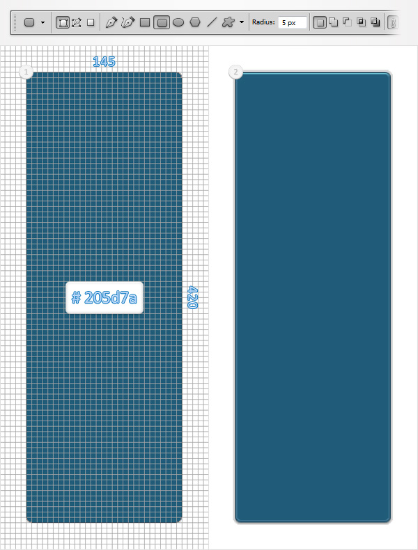 Set the foreground color to #205d7a, grab the Rounded Rectangle Tool, set the radius to 5px and draw a 145 by 420px vector shape.