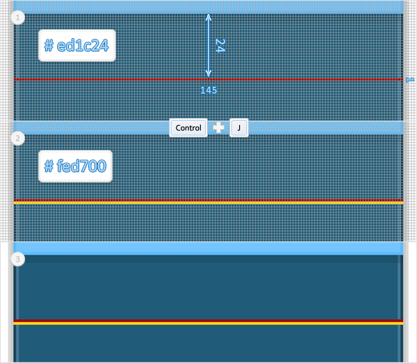 Set the foreground color to #ed1c24 and grab the Rectangle Tool. Create a 145 by 1px shape, place it as shown in the first image then duplicate it (Control + J).