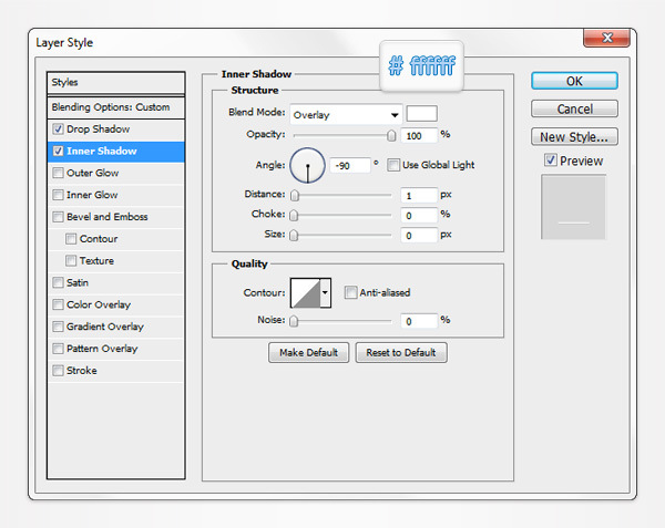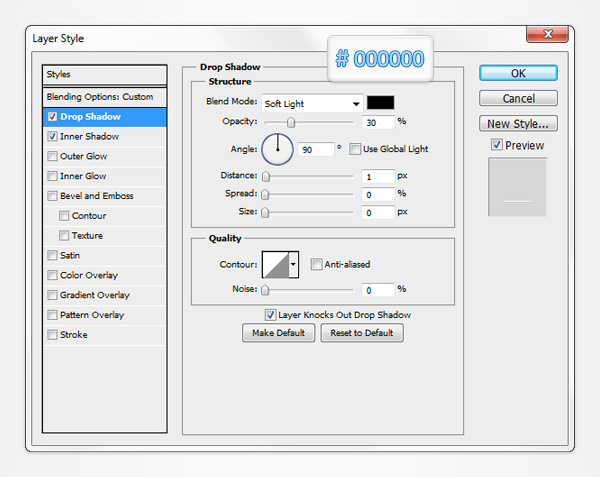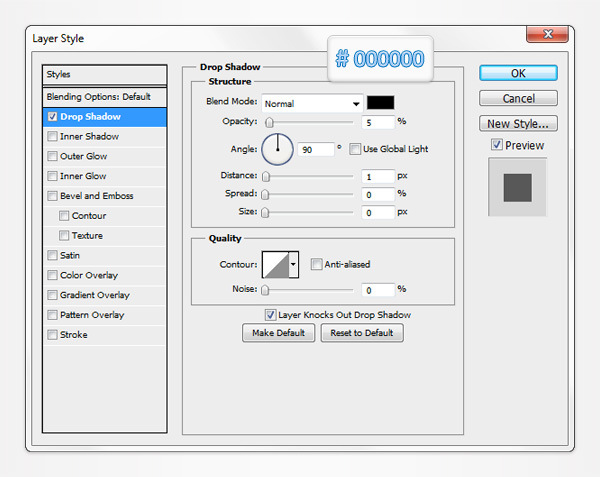 Duplicate "main" (Control + J). Open the Layer Style window for this copy and edit the attributes used for the Drop Shadow as shown in the following image.