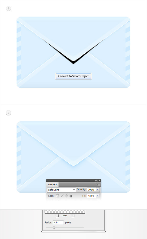 Keep focusing on the Layers panel, right click on this black vector shape and simply go to Convert to Smart Object. Make sure that this new smart object is selected, change its blending mode to Soft Light and go to Filter > Blur > Gaussian Blur. Drag the slider to 4px and click OK.