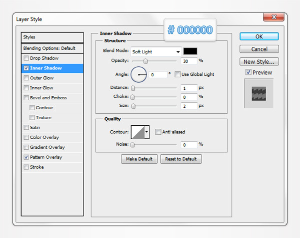 Duplicate the burgundy vector shape (Control + J). Select this copy, clear the current Layer Style attributes, lower its Fill to 0% then open the Layer Style window and enter the properties shown in the following images.