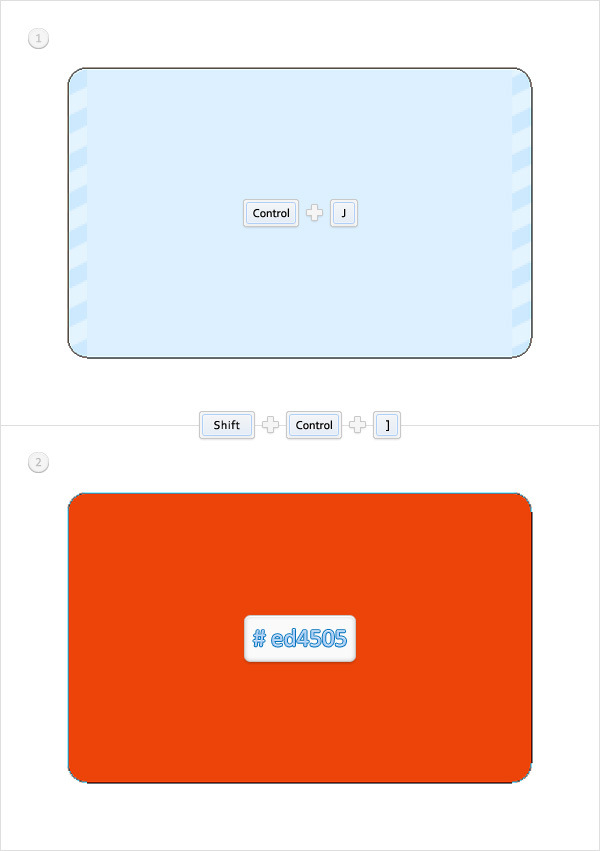 Move to the Layers panel, focus on this copy, double click on the color thumbnail and replace the blue with #ed4505.