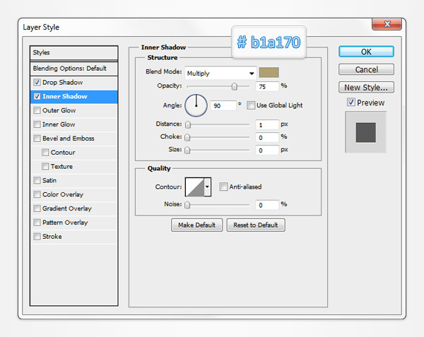 Select this copy, lower its Fill to 0% then open the Layer Style window and enter the properties shown in the following images.