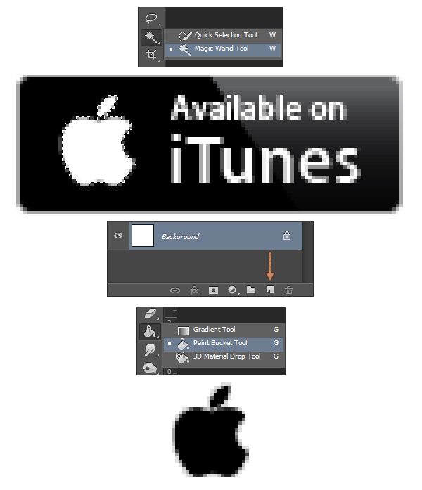 Open one of those PNG files, pick the Magic Wand Tool, hold the Shift button from your keyboard and click on the white area that makes up the Apple logo.