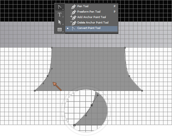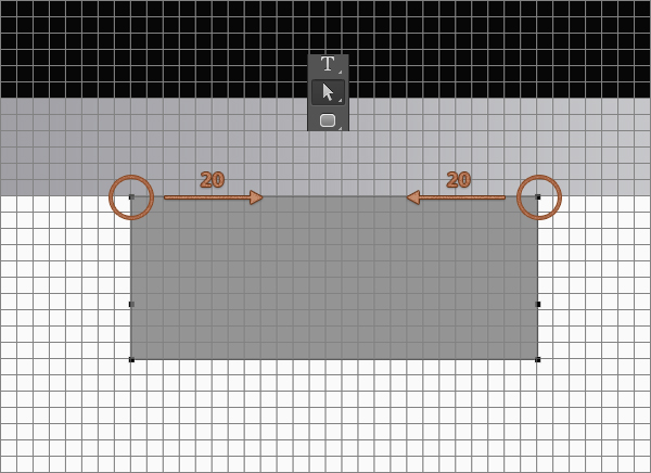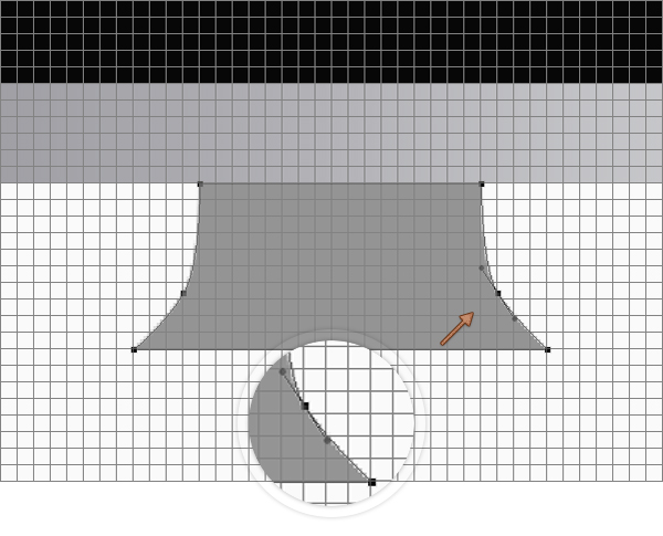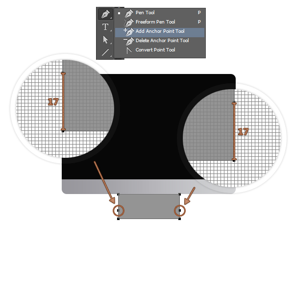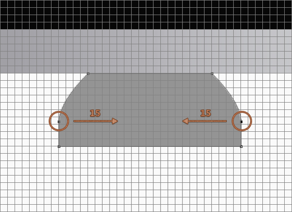 Select the anchor points added in the previous step one by one and drag them 15px to the center.