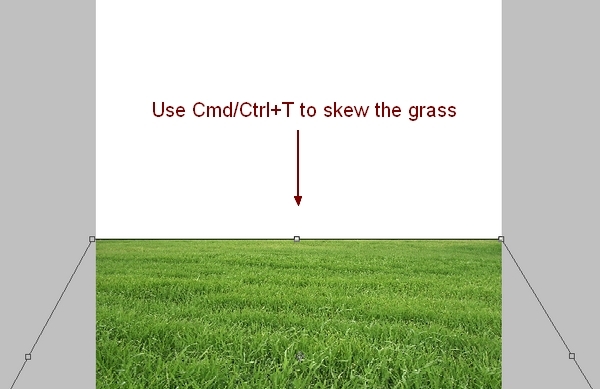 Create a new document, size 1000×1000 px and fill it with white (you can use your own size and color). Open the grass stock. Use the Move Tool (V) to drag it onto our white canvas, use Free Transform Tool (Cmd/Ctrl+T) to resize and skew it to get the look below: