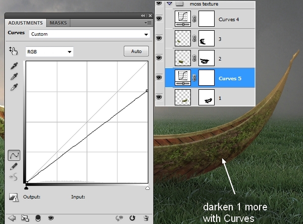 I made a Curves layer above the moss ones to darken them: