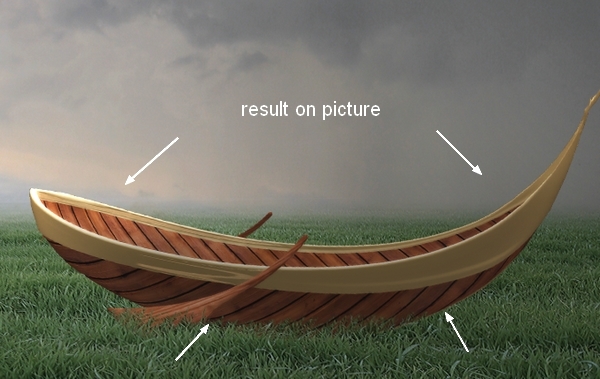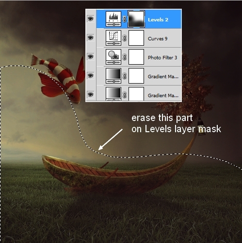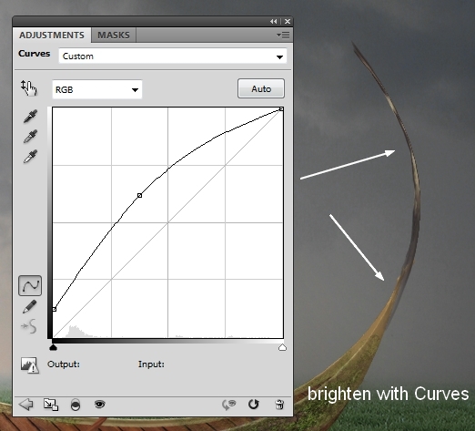 The trunk looks too dark compared with the boat so I used Curves to brighten it: