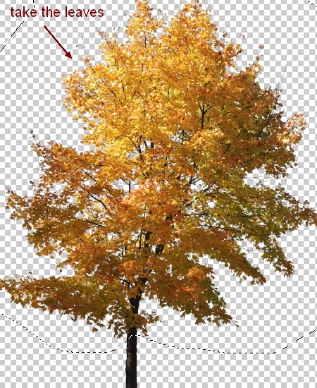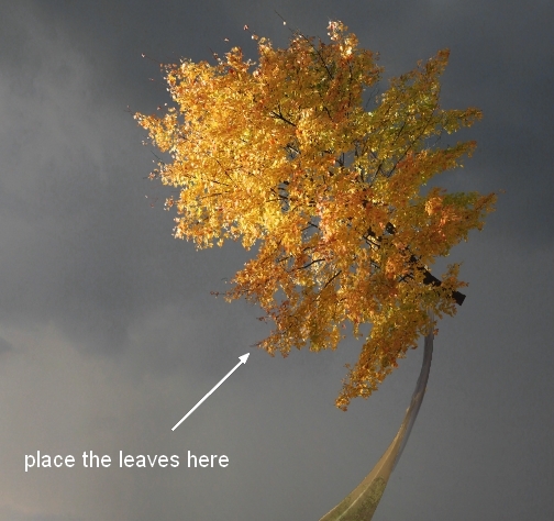 Add layer mask to the leaves layer. Use grass brush, number 199 to remove some unwanted leaves at the bottom: