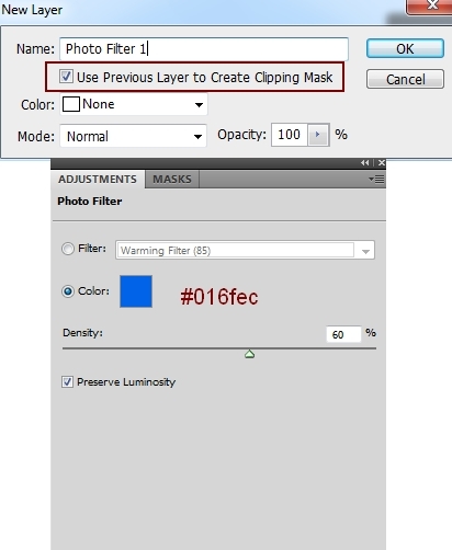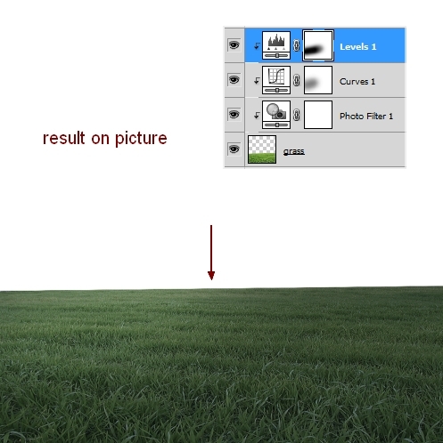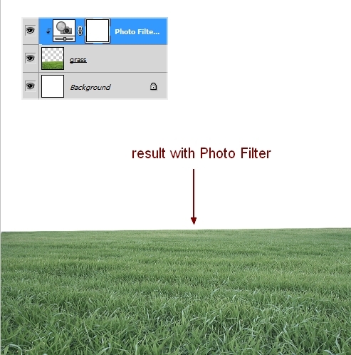 To change the color and contrast of the grass, I used some adjustment layers with Clipping Mask. On the grass layer, go to Layer-New Adjustment Layer-Photo Filter: