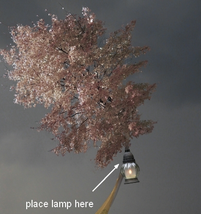 Isolate the the lamp and place it under the leaves: