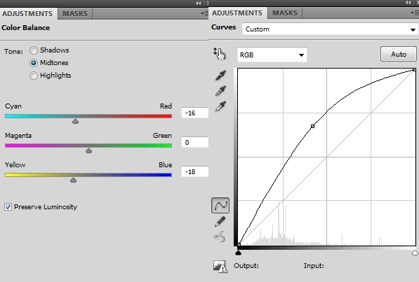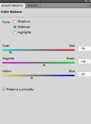 I added a Color Balance layer within this group to reduce the red tone a little: