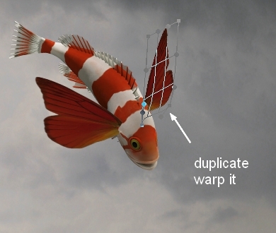 Duplicate this wing layer and move to the the other side, and transform it to fit the movement of the fish: