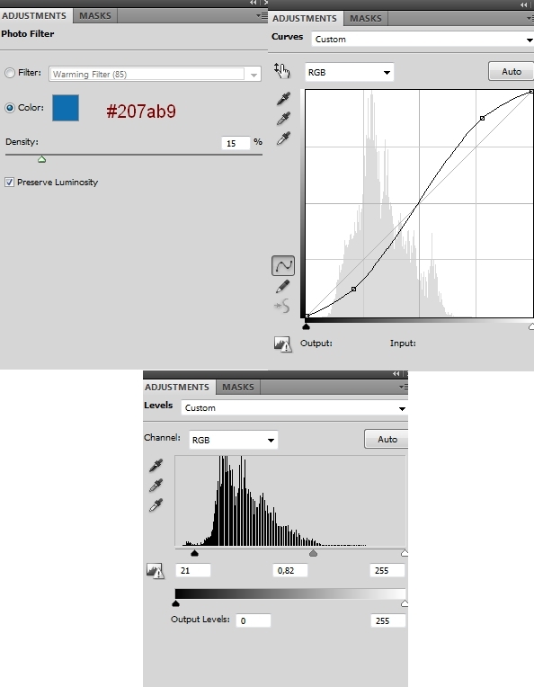 Photo Filter, Curves and Levels: