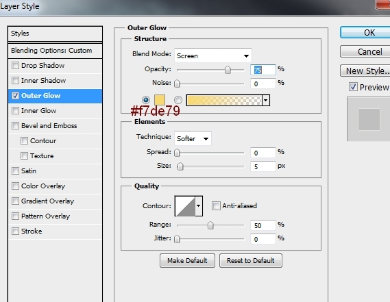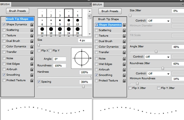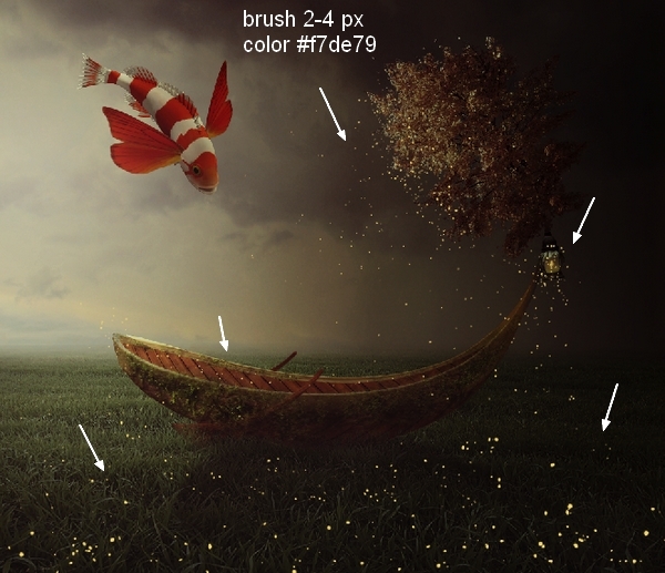 In this step we’ll make some magic sparkles for the picture. Create a new layer on the top. Change the brush color to #f7de79 and size to 2-4 px. Press F5 to change the settings of this brush:
