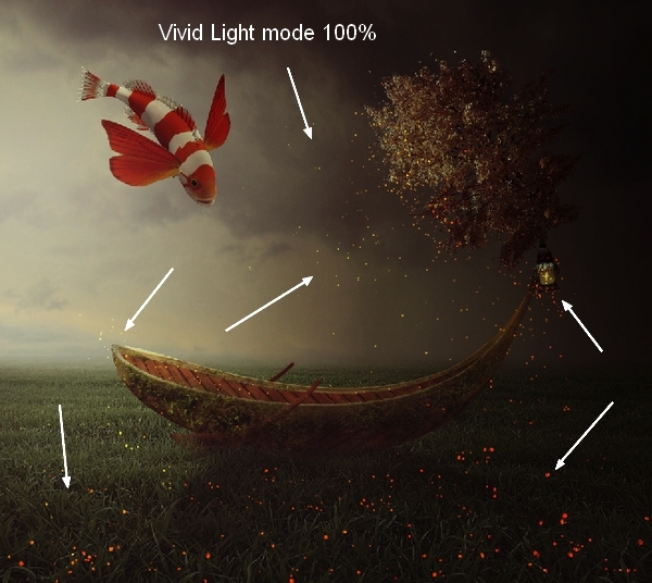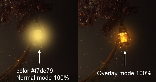 Create a new layer and use the brush with color #f7de79 to make the light effect stronger. Set the mode to Overlay 100%: