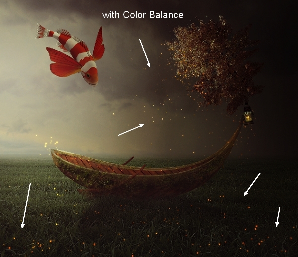 I used Color Balance and Curves to change the color and brighten the fish: