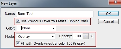 Make a new layer (Clipping Mask), change the mode to Overlay 100% and fill with 50% gray: