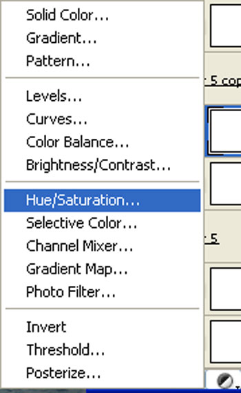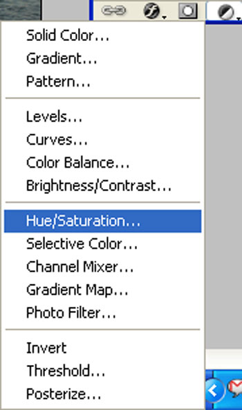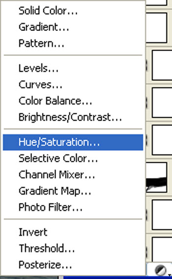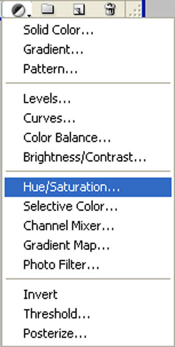 Create a new Hue/Saturation adjustment layer from the bottom of the layers palette .