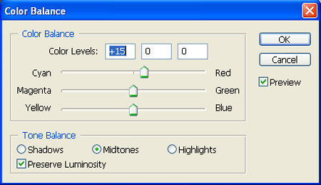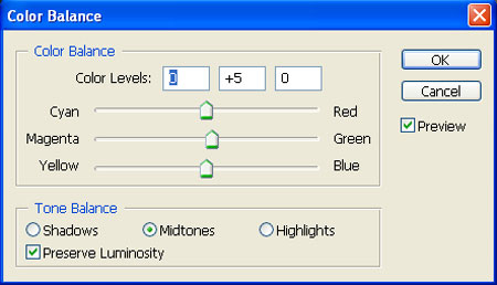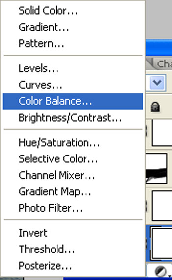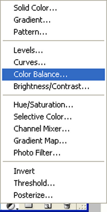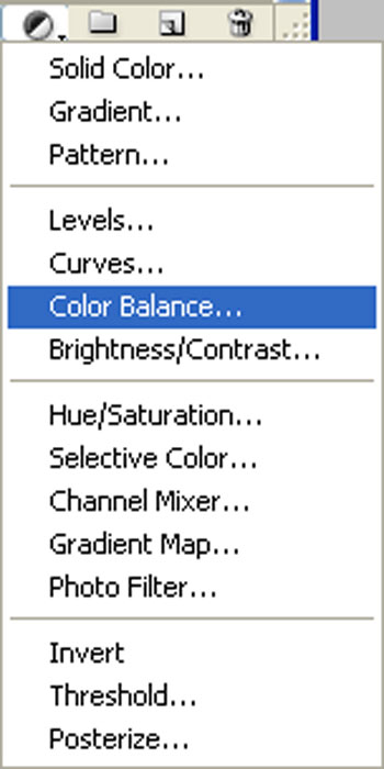 Create a new Color balance adjustment layer from the bottom of the layers palette .
