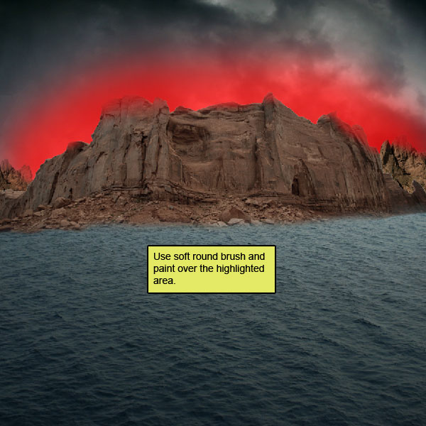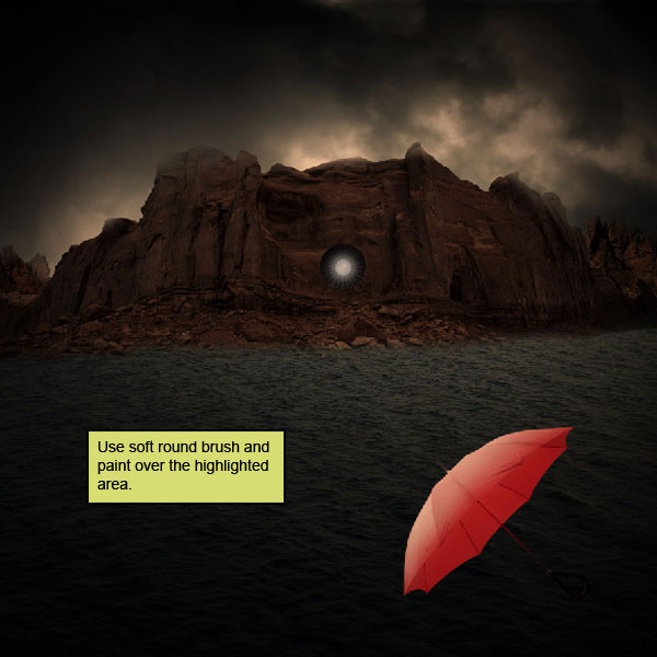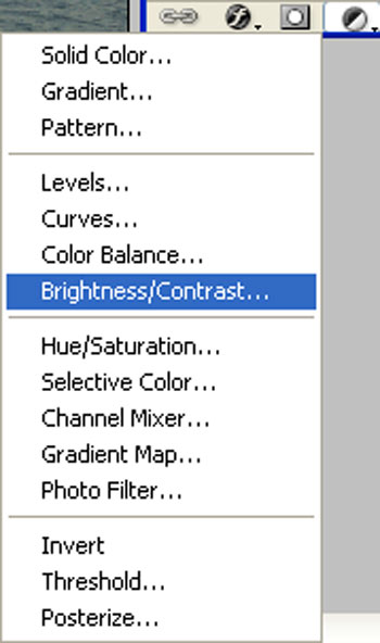 Create a new Brightness/Contrast adjustment layer from the bottom of the layers palette. Press Alt+left click in between the 2 layer’s (sea layer and Brightness/Contrast) to make a mask.