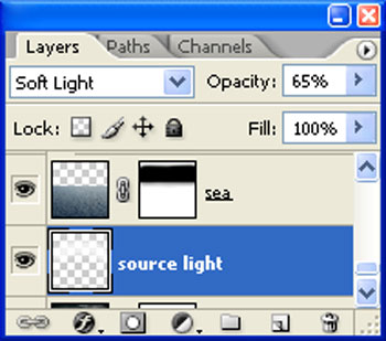 Change the layer mode of “Source light1” to “Soft light” and opacity to 65%.
