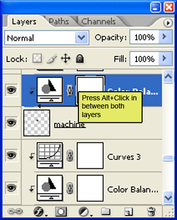 Press Alt+left click in between the 2 layer’s (engine layer and color balance) to make a mask.