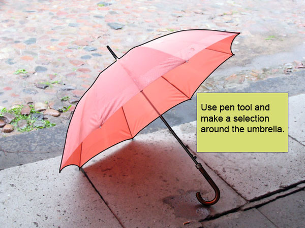 Click the Umbrella and press P to activate the Pen tool and then make a selection around the Umbrella and then click V to activate the Move Tool. Left-click the image and drag the image to the main canvas and change the layer name to “Umbrella1”.