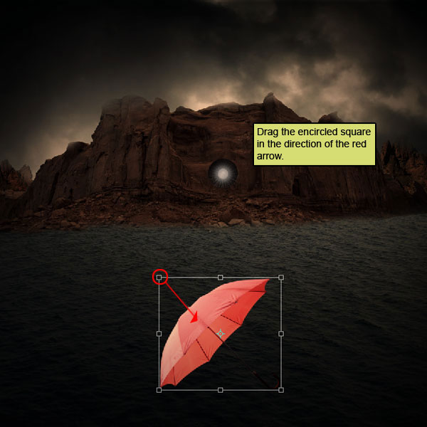 Next, activate the Transform tool (Ctrl/Cmd +T), then while the “Umbrella1” layer is selected, resize it as shown below: