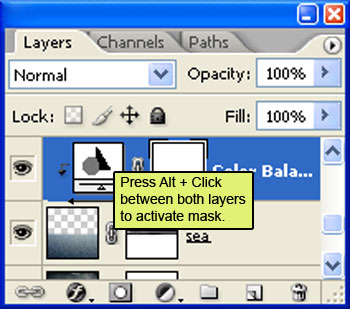Press Alt+left click in between the 2 layer’s (Sea layer and Color balance) to make a mask.