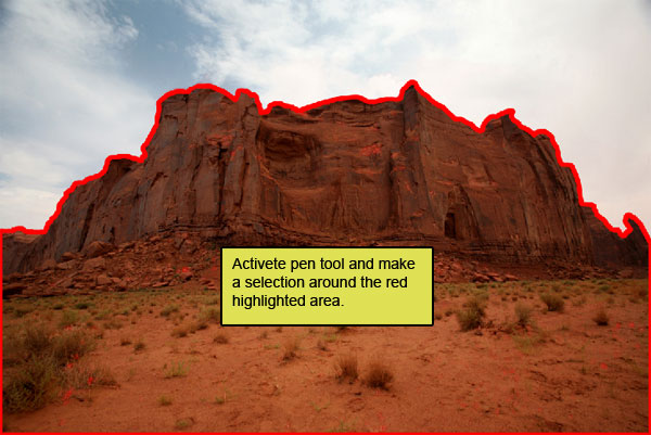 Click the Stock179 and press P to activate Pen tool and then make a selection around the mountain and then click V to activate the Move Tool. Left-click the image and drag the image to the main canvas and change layer name to “Mountain2”.