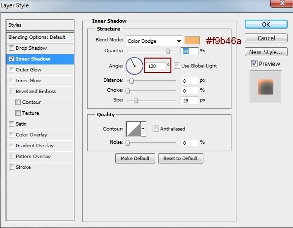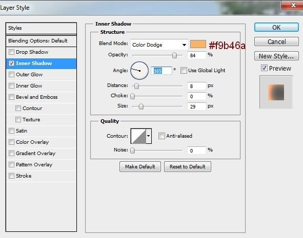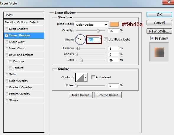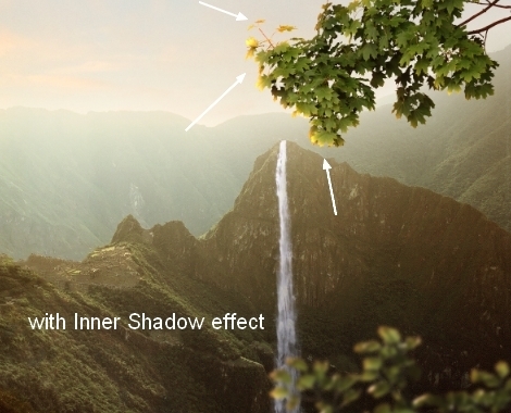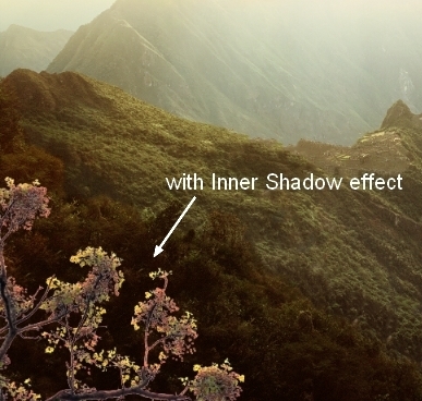 To add light to the branches, I used Inner Shadow effect. Double click this layer, choose Blending Options: