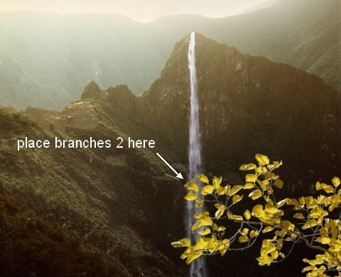 Cut out the branches 1 and place it at the bottom left of the pic: