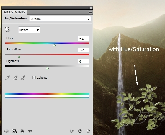 I used Hue/Saturation to reduce the saturation of the branches:
