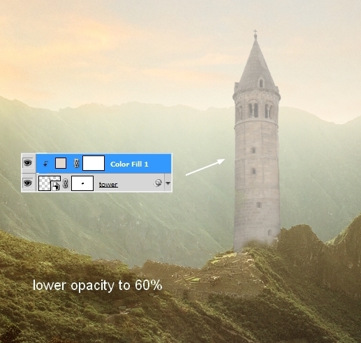 To add mist effect to the tower (we’ve placed it at a misty background), go to Layer > New Fill Layer > Solid Color: