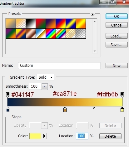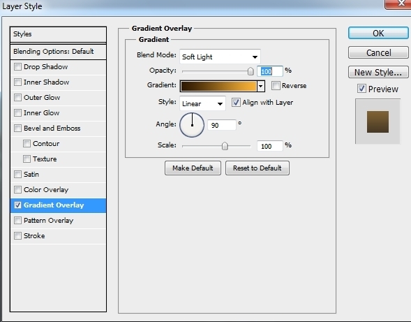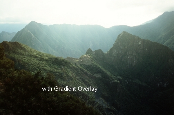 To change the contrast and color of the landscape, I used Gradient Overlay effect. Double click landscape layer, choose Gradient Overlay: