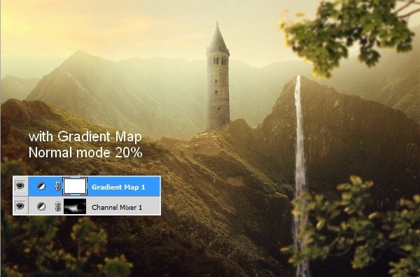 Lower opacity of this Gradient Map layer to 20%:
