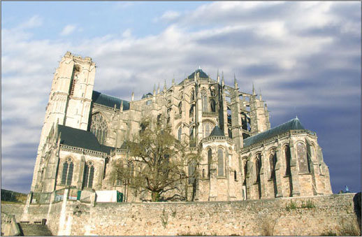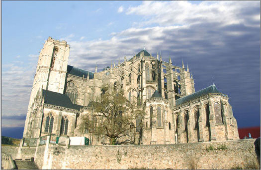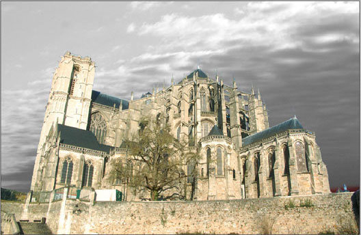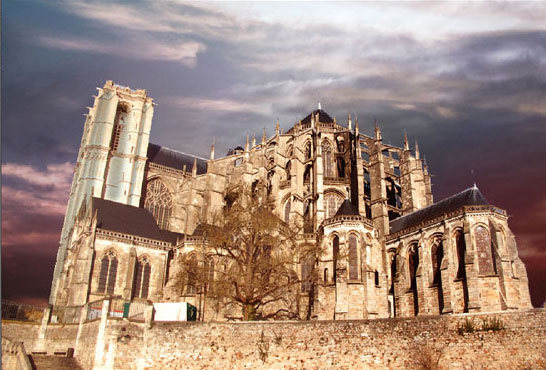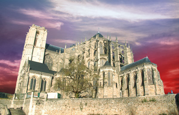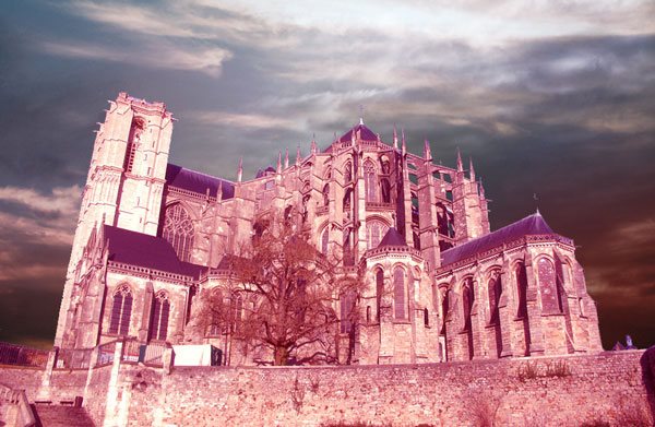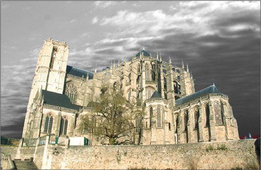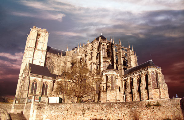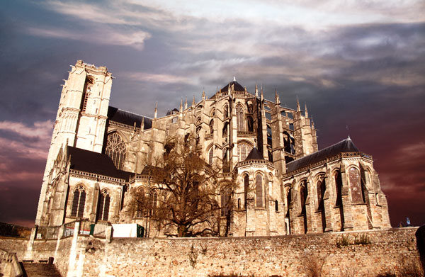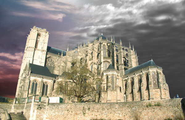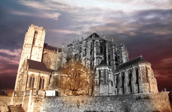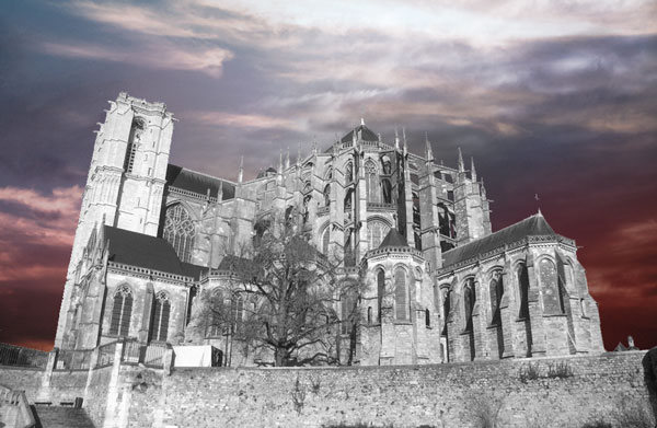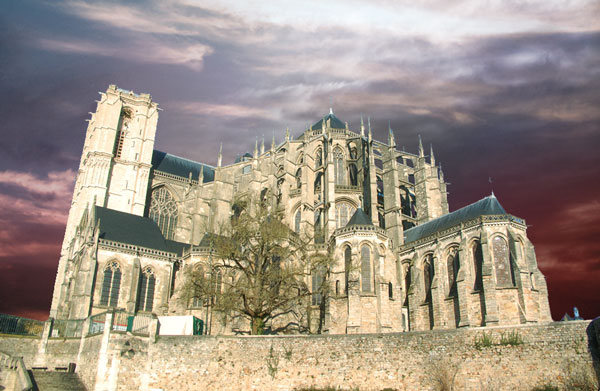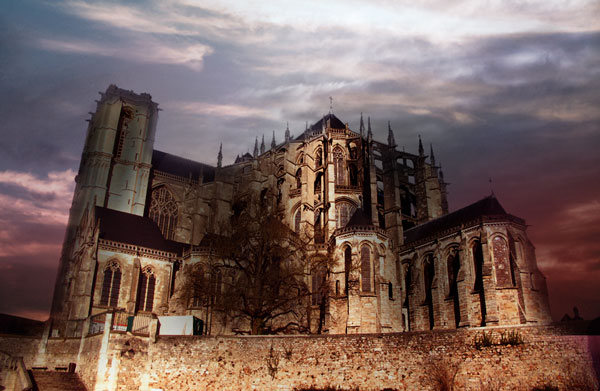 There is only one detail left. If we look on the edges of the cathedral, we can notice that the main source of light is situated behind the cathedral, so the rays that come through the clouds should light the walls of the cathedral partially.