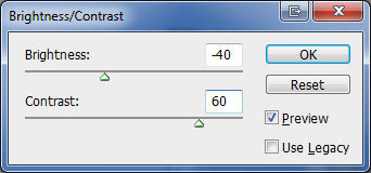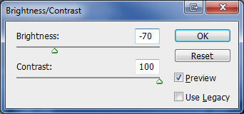 Adjust brightness and contrast using Image > Adjustments > Brightness/Contrast with the following parameters:
