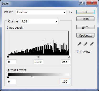 As the color gamut is dark enough, it’s worth making this layer much darker using Image > Adjustments > Levels: