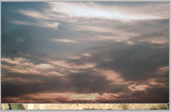 Now select the Eraser Tool and soft-edged brush and erase the empty area of the sky on the left.