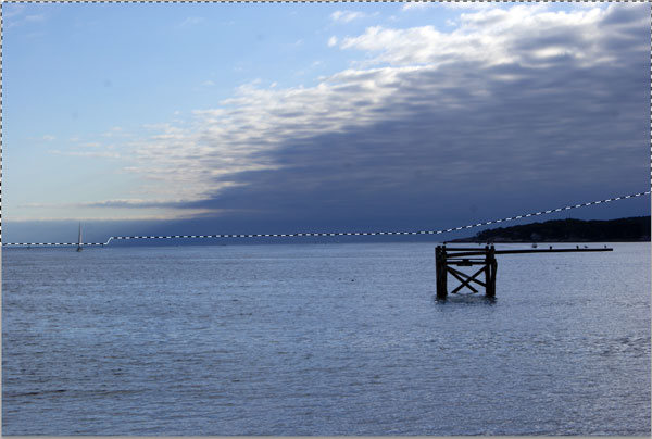 Open Dock To Nowhere photo. Cut out a fragment of sky by using the Polygonal Lasso Tool (Feather: 10px).