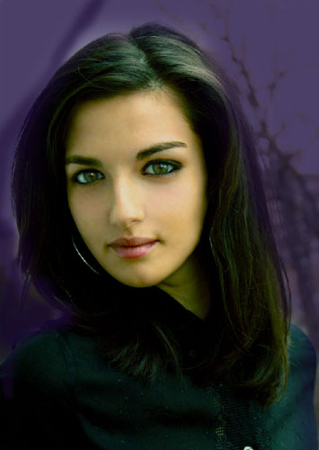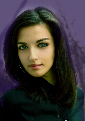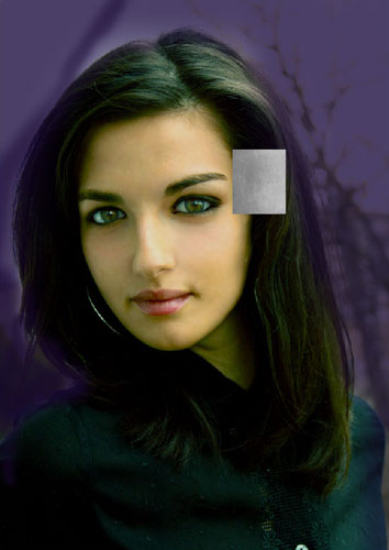 Now we have to consider reflection on the picture. As we can see the background is purple, so we should have the same color shade on hair, clothes and face. To do this create a new layer, assign blending mode to Soft Light, take a sample of the background color using the Eyedropper Tool, then add a purple hue to all of the picture using the Brush Tool (Opacity: 30-40% with soft round brush).